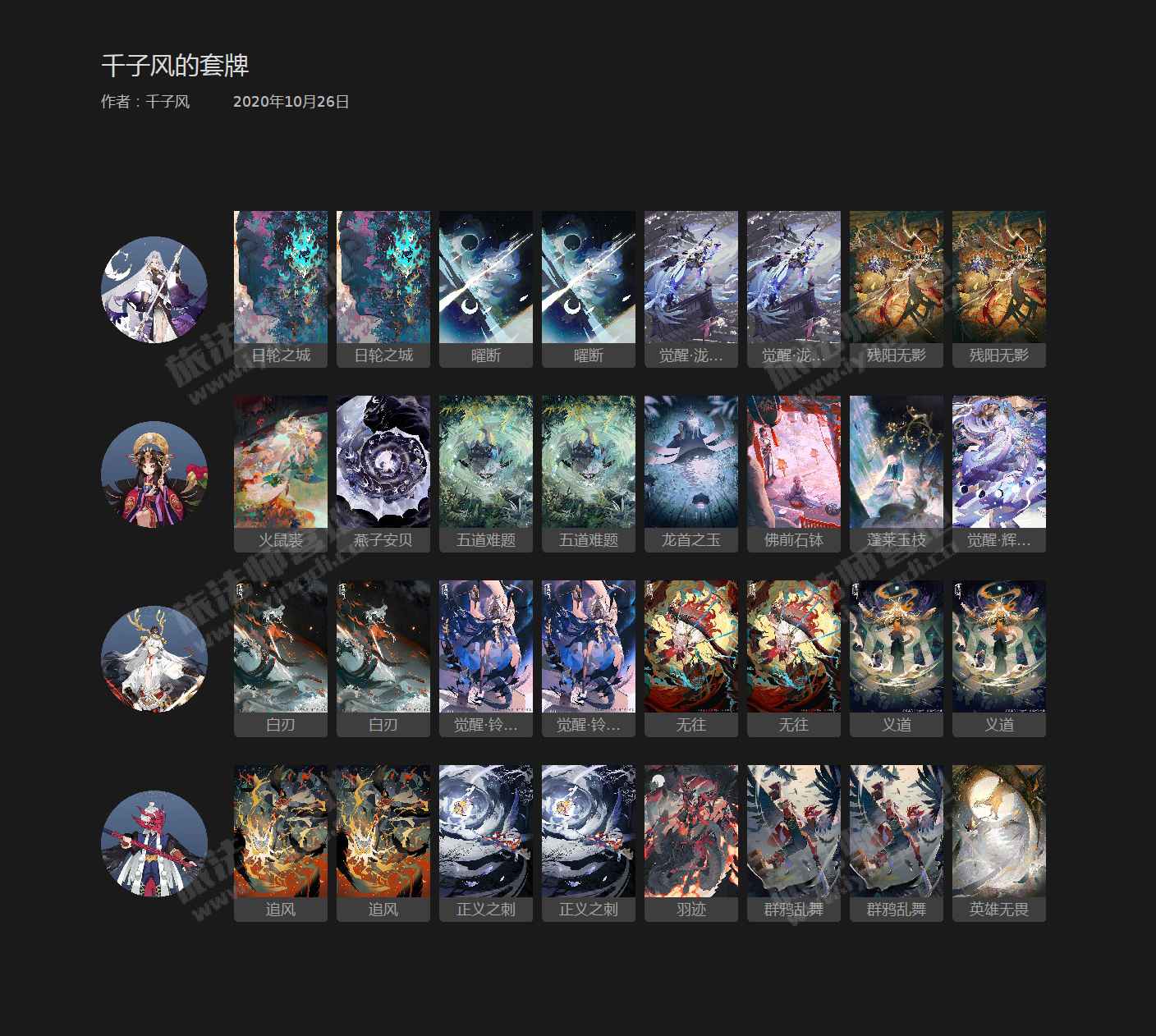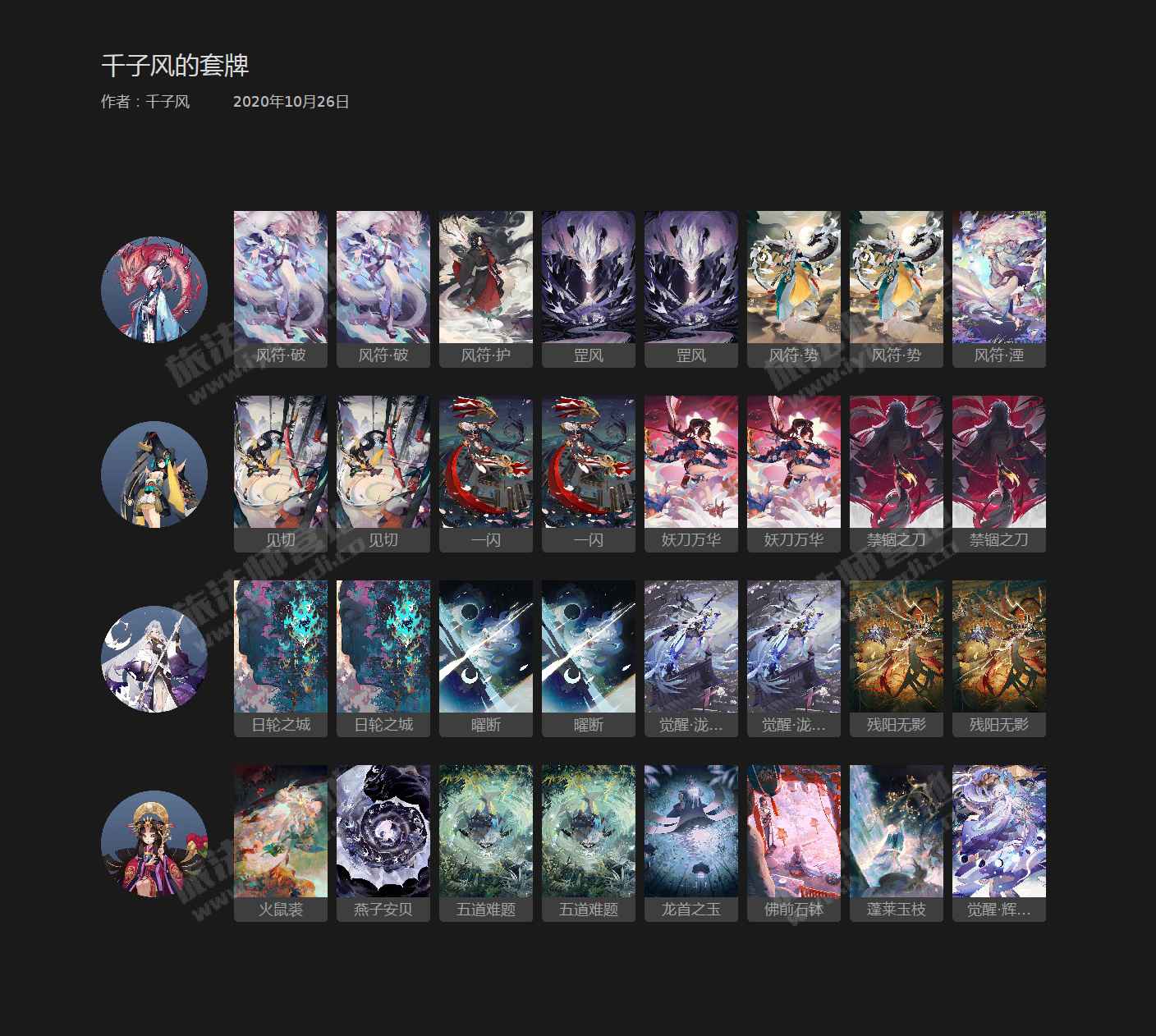 这是一套以泷夜叉姬,铃鹿御前为核心的中速卡组。特点是高爆发、强压制、高斩杀。