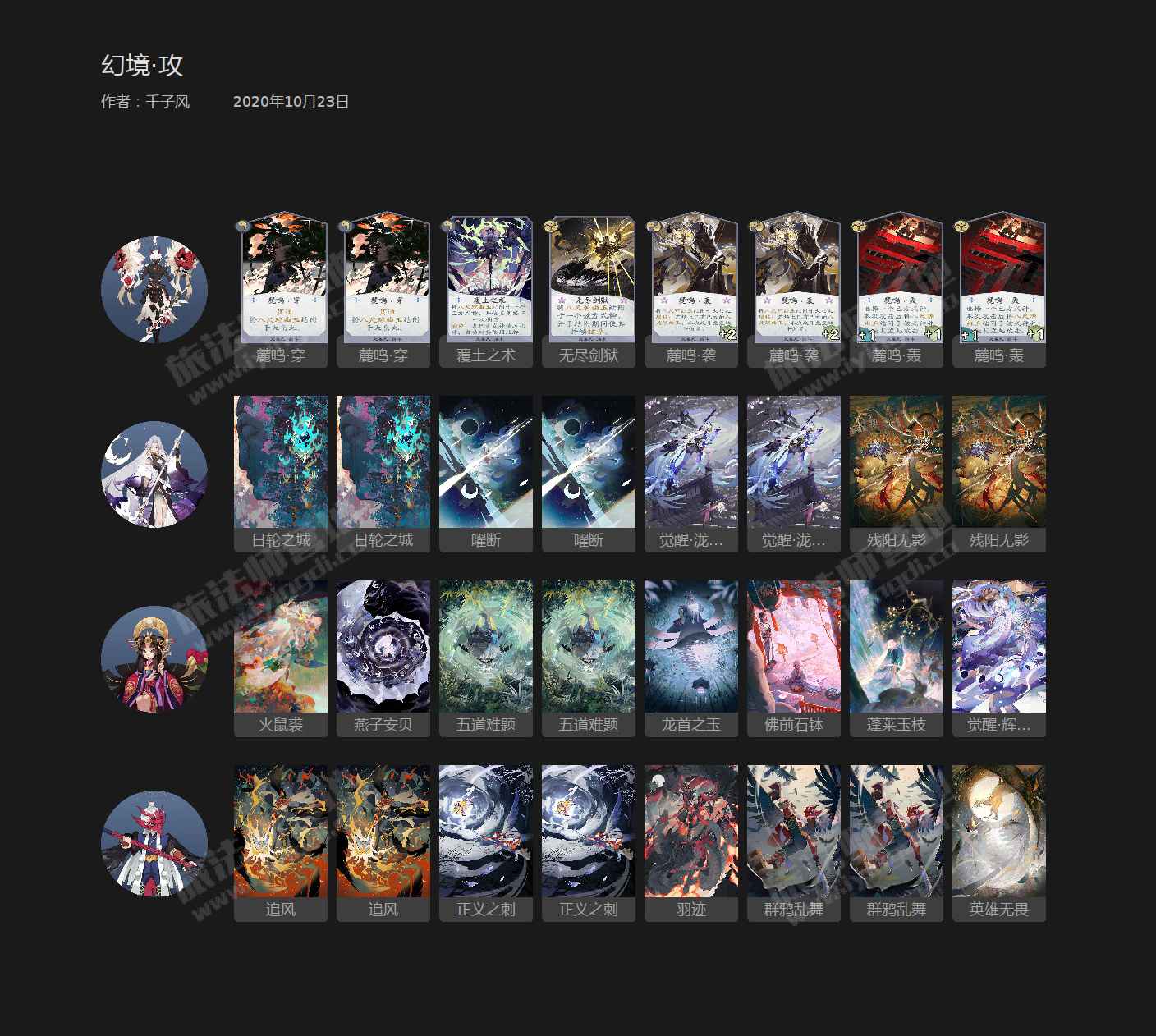 2、泷夜叉姬:标准中速带法。天胡情况是一勾准备一个幻境,二勾觉醒+曜断过墙+残阳无影,抢血的同时压一个高攻免伤的大哥。