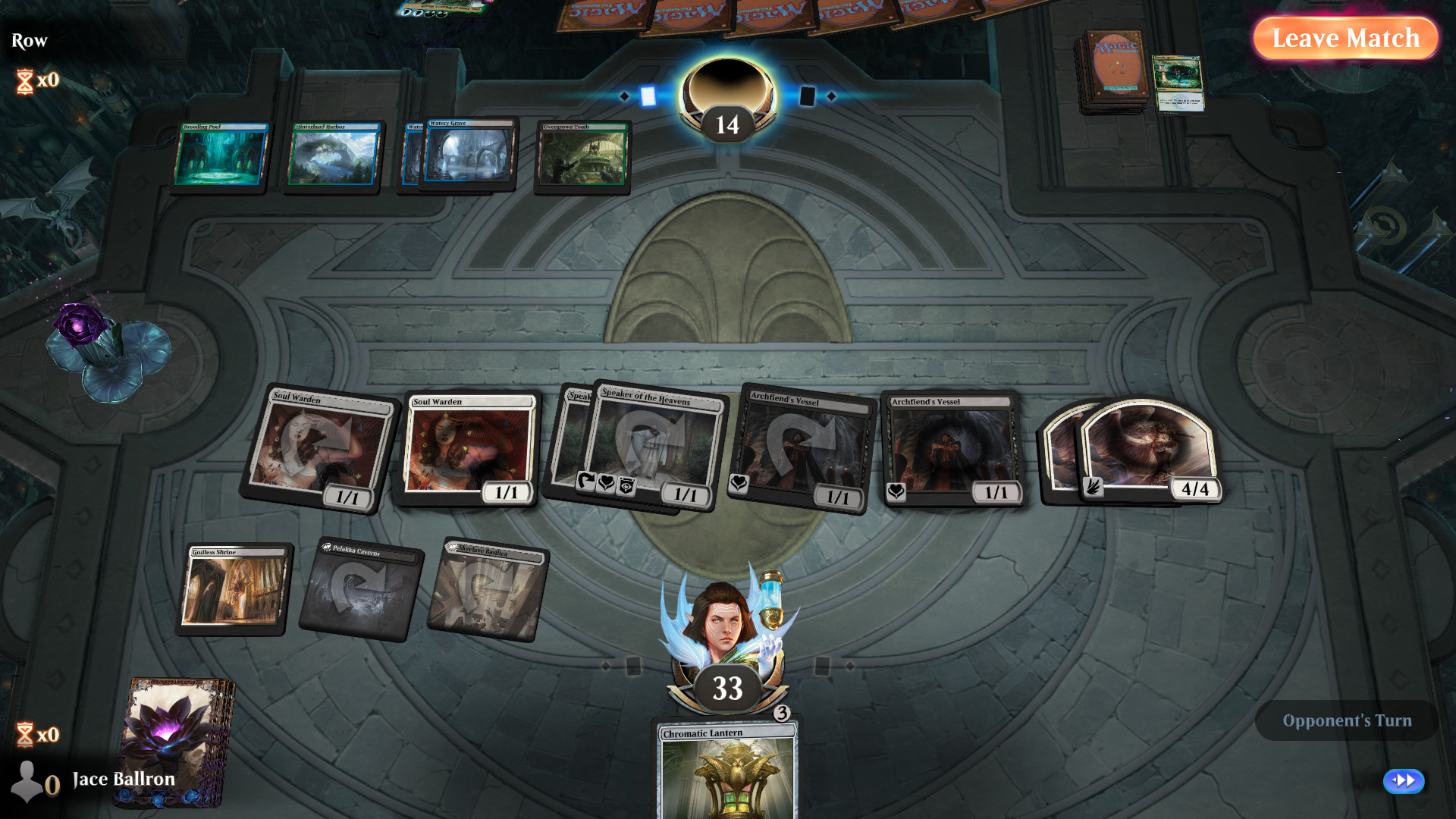不过,就像很多其他组合技一样,这套牌面对不那么快的快攻、中速和各种其他奇奇怪怪的套牌时表现出乎意料的不错,而这主要得益于套牌简单强效的制胜计划。经常发生的情况是中速铺了一场或者解光了场面,结果下个回合尊殿直接斩杀,对手可能还没回过神来就被打飞了。也正因如此,比较出乎意料的是,这套牌面对当前史迹环境霸主之一苏勒台时并不落下风。这其实主要是占了BO1的便宜:当前主流的苏勒台主牌60张中只有一般最多带一到两张的传说终结/倨傲击能真正意义上阻止尊殿组合技达成,其余的干扰中,有效的也只有四张攫取思绪。甚至因为这套牌前期极像黑白僧侣,对手经常会错误判断弃牌的时机而死于后面抓到的尊殿。同时,苏勒台这类中速制胜一般不快,这也为组合技提供了充足的时间。