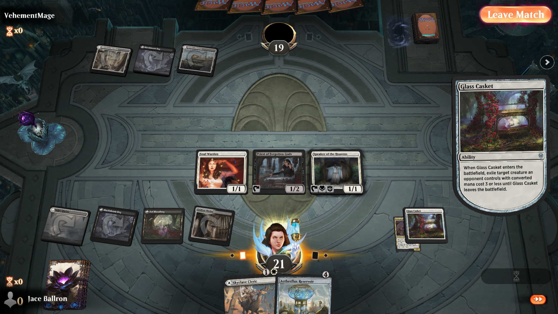 接下来作者大概说一下这套牌的优劣对局。由于组合技终端高达六费且几乎所有的地都需要横进,这套牌的节奏不是一般的差,因此面对鬼怪这类速度很快的快攻或者快速组合技时几乎毫无抵抗力。面对控制也会很难办,但由于套牌具有相当程度的迷惑性,先手的话机会还是不小的。而随着悖论引擎组合技逐渐崭露头角,这套牌最近又多了一个天敌:万创卡恩。如果卡恩在场那么以太流贮库的异能无法启动,斩杀自然无从说起,但鉴于悖论引擎组合技速度一般相当快,这套牌大概等不到拍下尊殿人就先没了。