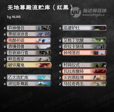 作者参考评论区Xerfscy的建议,以牺牲思路为主轴组出了红黑的版本(怎么感觉这些都比自己原来白黑的强,组牌彩笔实锤了),猫炉和画家保证前期血线,村民仪式和瓦拉库醒转过牌找尊殿和流贮库启动。牌表如下: