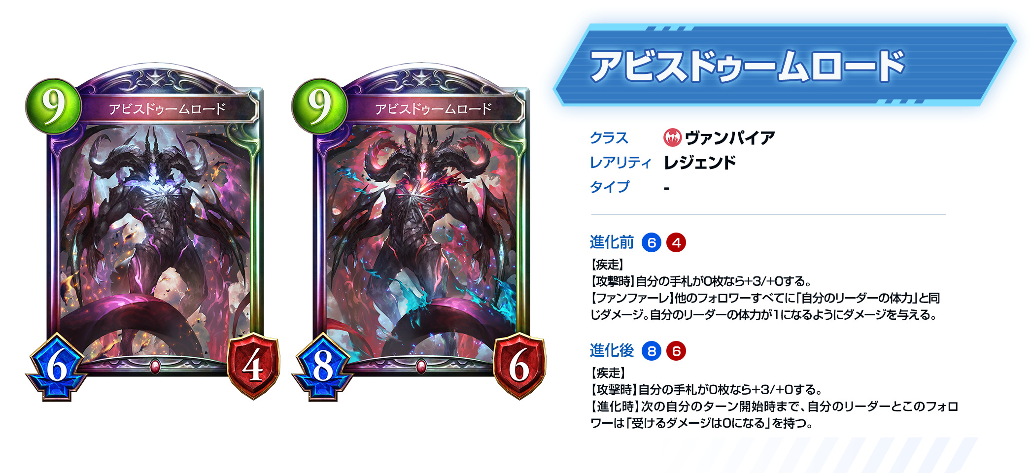 进化时 给予对方的主战者等同于场上其他体力为5或以下的随从数量的伤害。破坏场上所有其他体力为5或以下的随从。