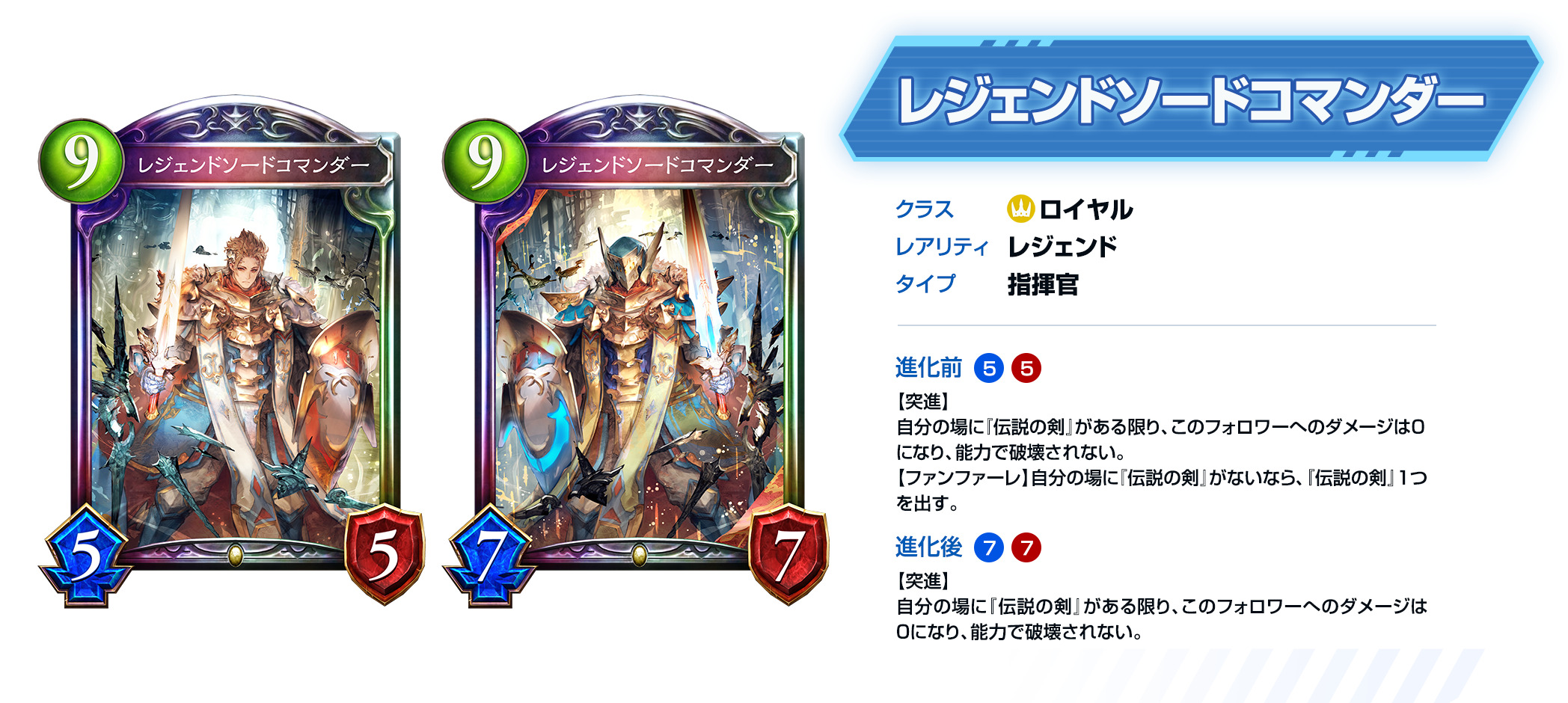 如果自己场上有传说之剑存在的话,该随从受到的所有伤害转变为0,不且会被能力破坏。