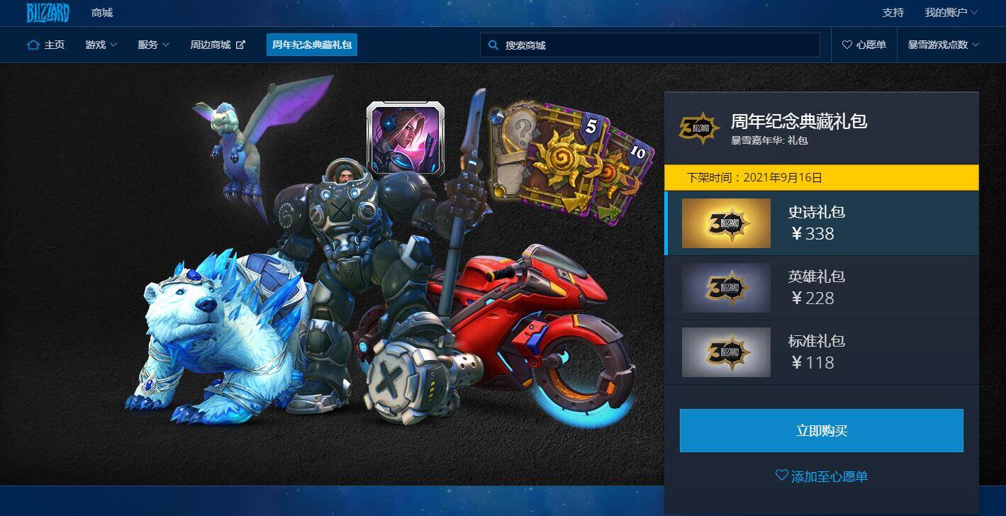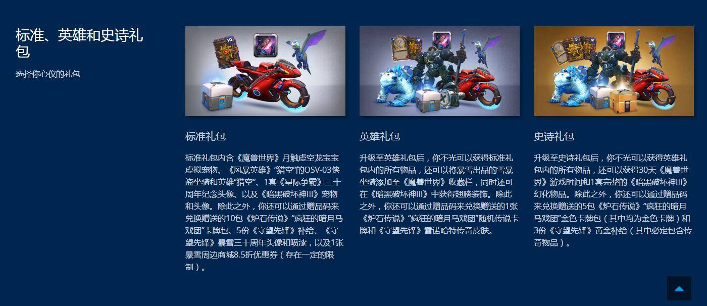 目前这三款典藏包也已在国服上线,感兴趣的玩家可以点击此处前往暴雪商城购买,标准版售价118元,英雄、史诗版定价分别为228元、338元。值得一提的是,国服玩家购买了典藏包之后还可以通过微信公众号领取暴雪周边商城8.5折优惠券!