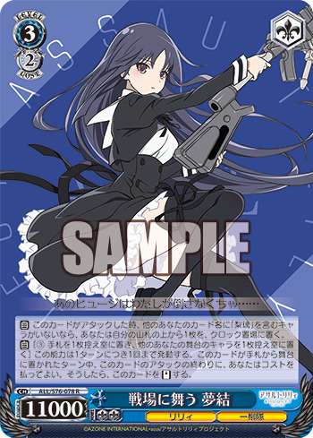 【永】你的回合中,其他你的《リリィ》角色存在的话,这张卡攻击力+2500,获得以下能力。『【自】这张卡的战斗对手倒置时,你可以将那个角色放置到回忆区。』
