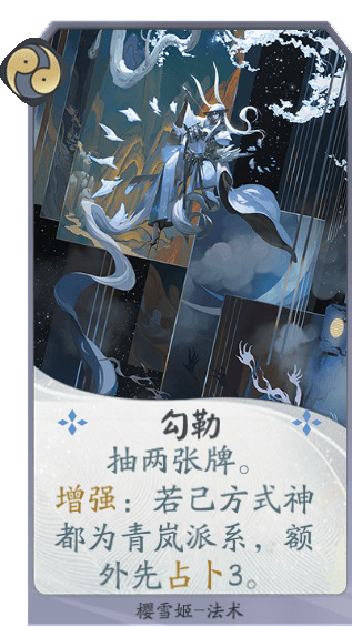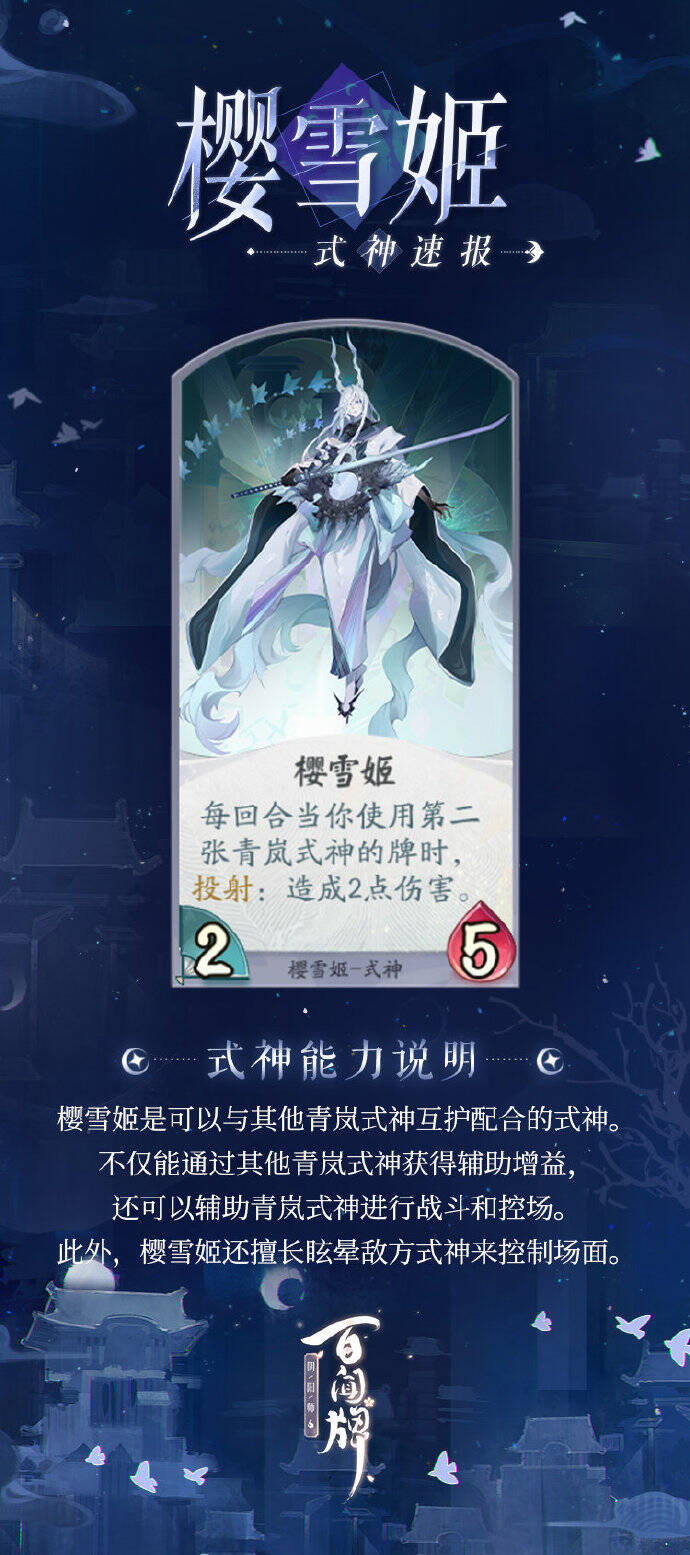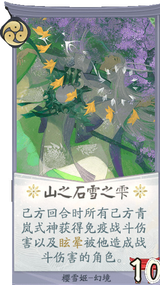 对局中的樱雪姬可以与青岚派系式神协作,为己方带来增益并向敌方施展控制效果。