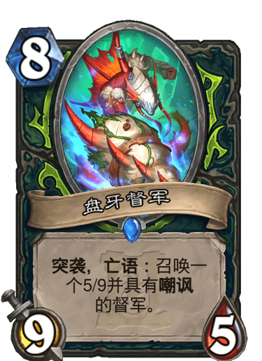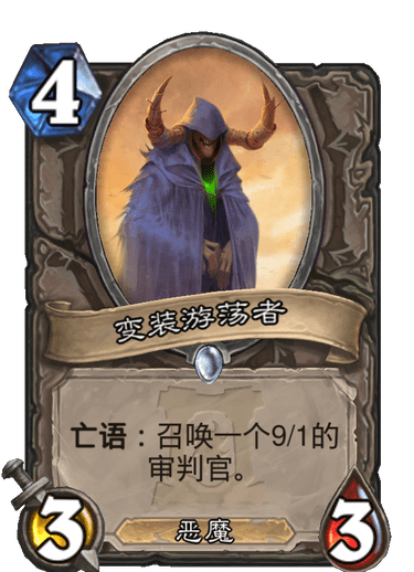 这二者自身的亡语都会继续召唤新的随从,配合剃刀沼泽兽王可以打出连环套娃的效果,但是4费3/3的身材比较勉强,变装游荡者召唤的9/1也比较容易被补刀打掉,在不能形成套娃combo的时候,这二者单独打出的强度只能说差强人意了。