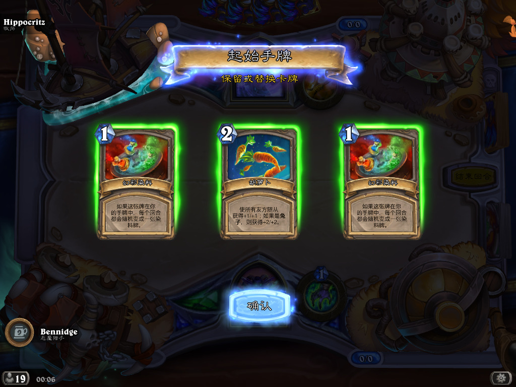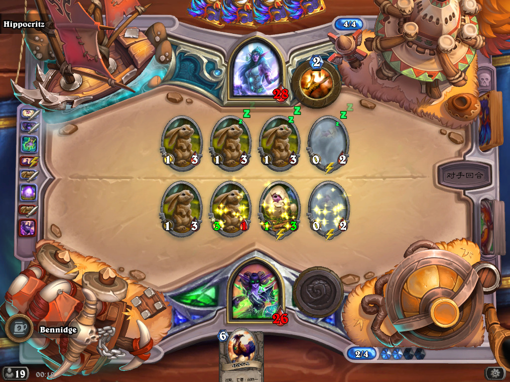 (但这次好像有bug,染料贴了没卵用,孵出来的全是白板兔子。所以起手全力找那随机的10张职业牌靠它们打,染料尽量不贴,贴了反而慢一回合出兔子。只有buff兔子的染料是有用的)
