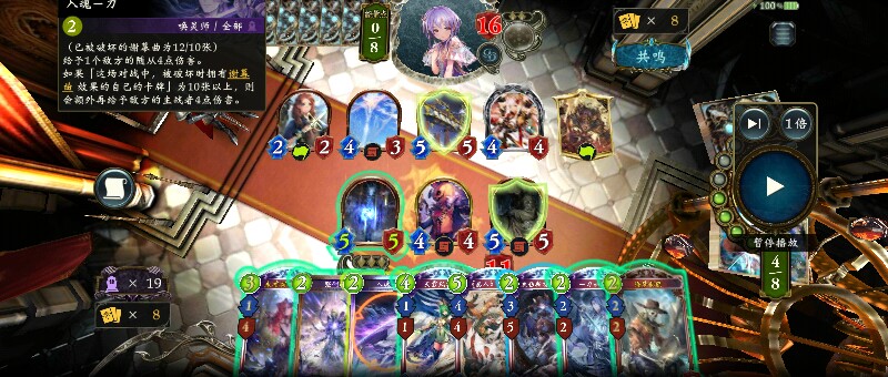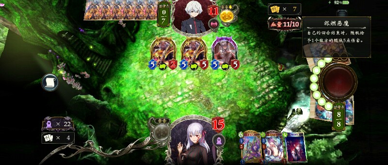 但随着老师的退环境,在你的回合前吸血鬼除了萝拉难有对群的抗快能力,而萝拉触发条件苛刻,这给了死灵制胜的希望,在与吸血鬼对局的时候甚至可以极端的放弃留塞蕾丝,选择横向的铺场,在对手没有罗拉的情况下难以处理前期的场面,高效的抢血也可以限制对手使用一些自残卡片,影响以后的展开。