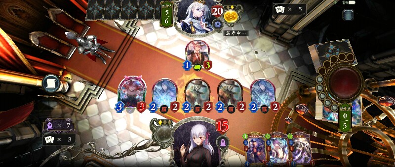 对手典范充足,此处唯一可能的赢法,是轮回送掉骑士,拉出无谢幕曲的312,然后结晶玛格纳或一刀打55,不管巫妖直接回合结束,通过卡场让3层buff的南瓜成为唯一的墙,让对手无法进行刷牌。