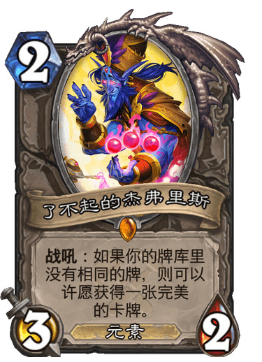 魔块术或宇宙术都是极其擅长防守的套牌,如果没有了不起的杰弗里斯我们很难拿下这一对局,好在并非所有术士都能准时打出空灵召唤者。这个对局唯一的技巧是尽快过牌来抽到了不起的杰弗里斯,再用它来处理掉对手难缠的大恶魔,或是直接过墙斩杀对手。