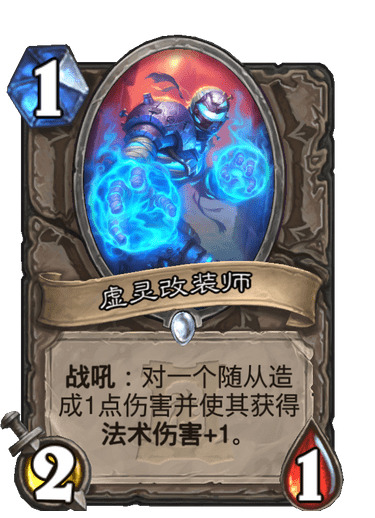在甩笔侏儒削弱后,虚灵改装师进入了我们的视野。经过测试,这张在标准模式发光发热的单卡显然不能适应狂野模式下的节奏。尽管虚灵改装师与布莱恩·铜须/暗影步的配合看上去很美,在绝大多数对局中我们都不需要如此高额的斩杀,事实上大多数时候这张牌就是一次性的甩笔侏儒。