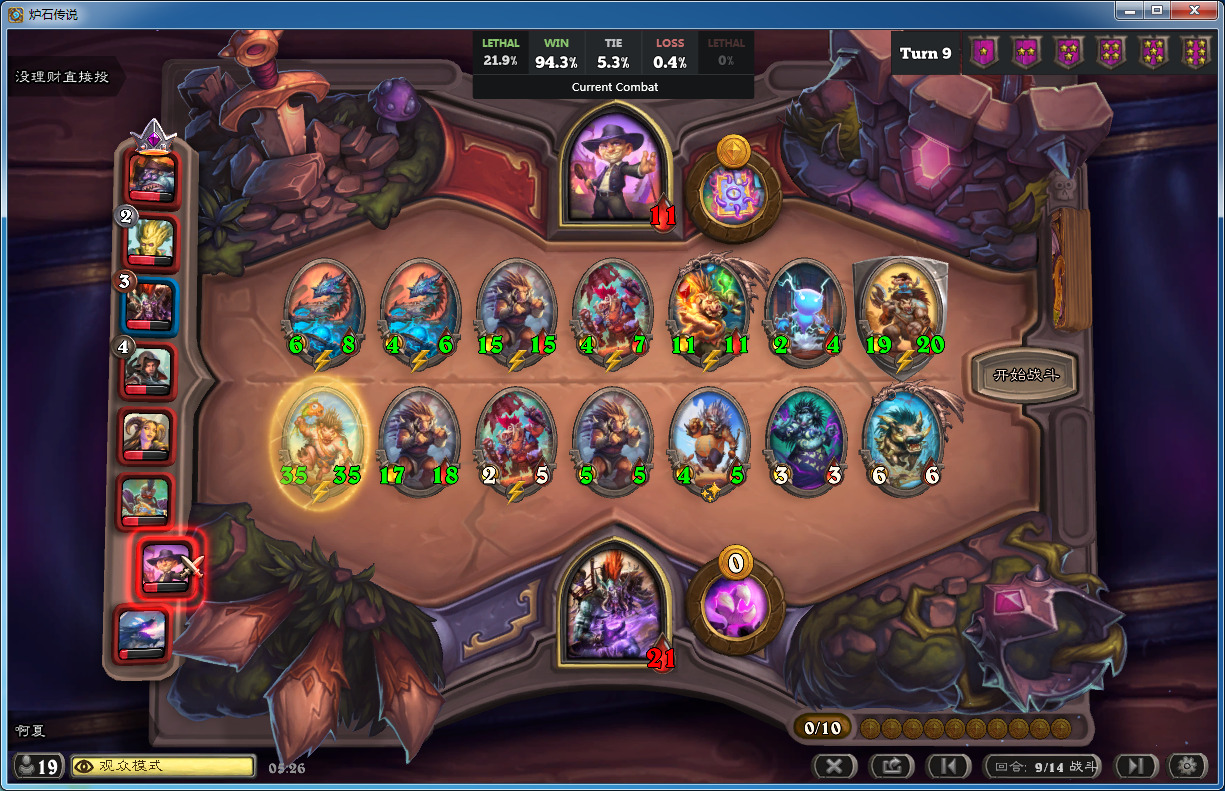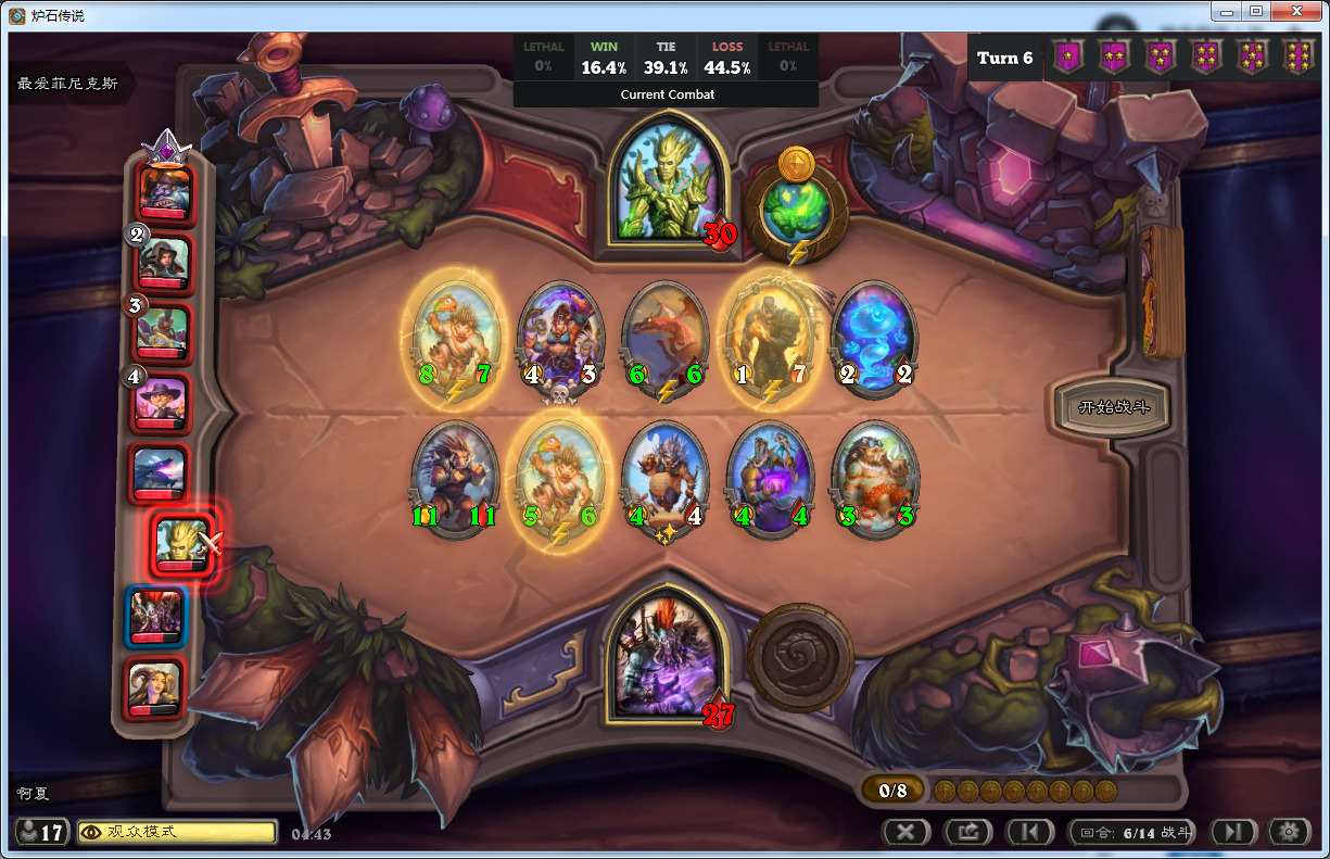 回合六下(8费):战力拉满,所以被奖励了,16.4%概率险胜。