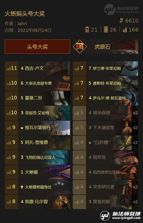 可替换卡位:哈罗德·戈多可替换成酒馆乱斗,可减少一名被胁迫的铁匠加一名赤手打斗者,同时5p卡位加一张 **稍微提高一点卡组稳定性。