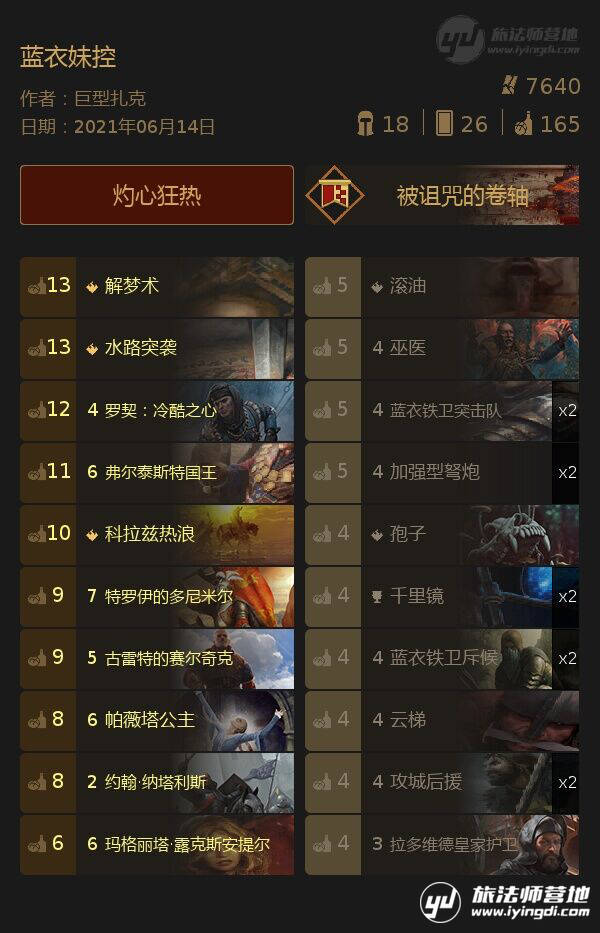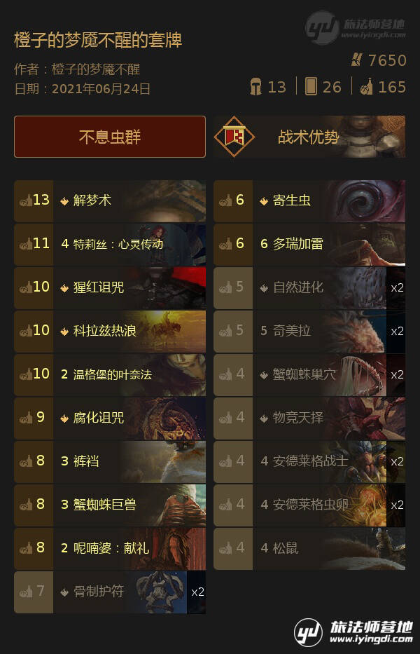 卡组替换:喜欢全知者的话可以蜈蚣+欧兹瑞尔+松鼠换成全知者+一对狂猎骑士。