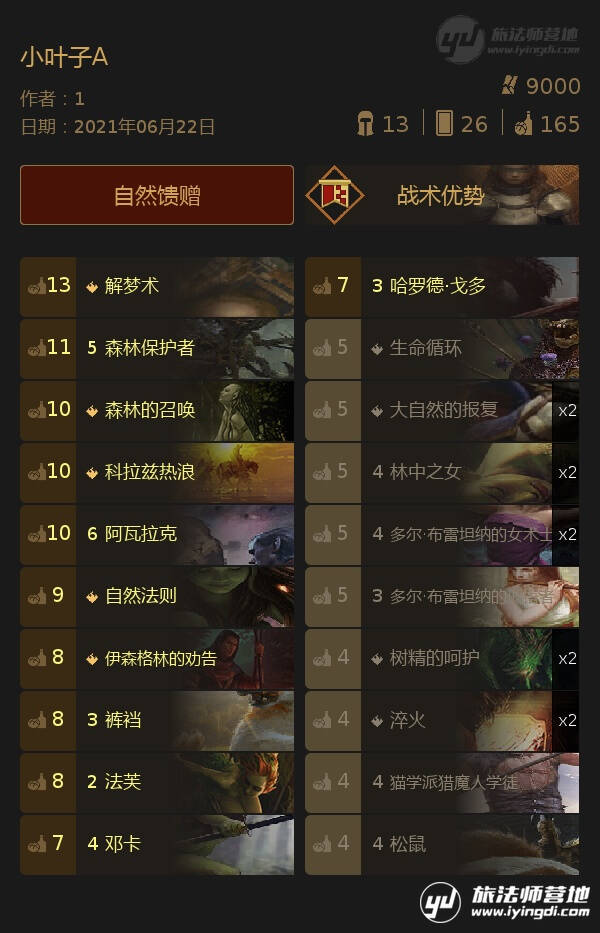 这是一套来自国外的小叶子卡组。
