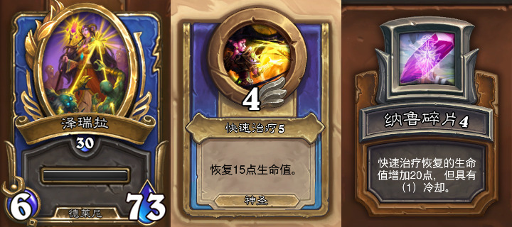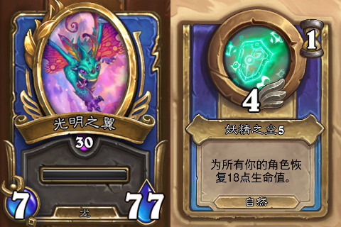 对比光明之翼的妖精之尘和泽瑞拉的快速治疗,妖精之尘是群奶但奶量少,快速治疗是单奶但奶量可以很高(装备纳鲁碎片,满级一次性回35点,副作用是+1冷却,但泽瑞拉本来也要用致盲配合进攻,副作用不大),也是各有优势;