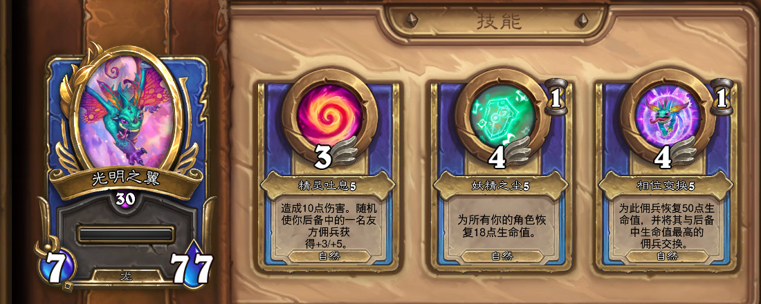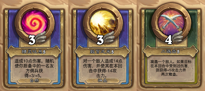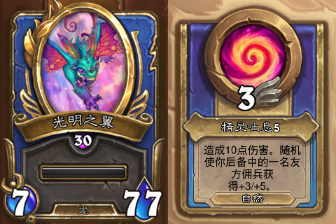 对比光明之翼的精灵吐息和泽瑞拉的致盲之光,精灵吐息可以buff后备英雄(虽然是随机目标),致盲之光可以减少萨穆罗受到的反伤,各有优势;