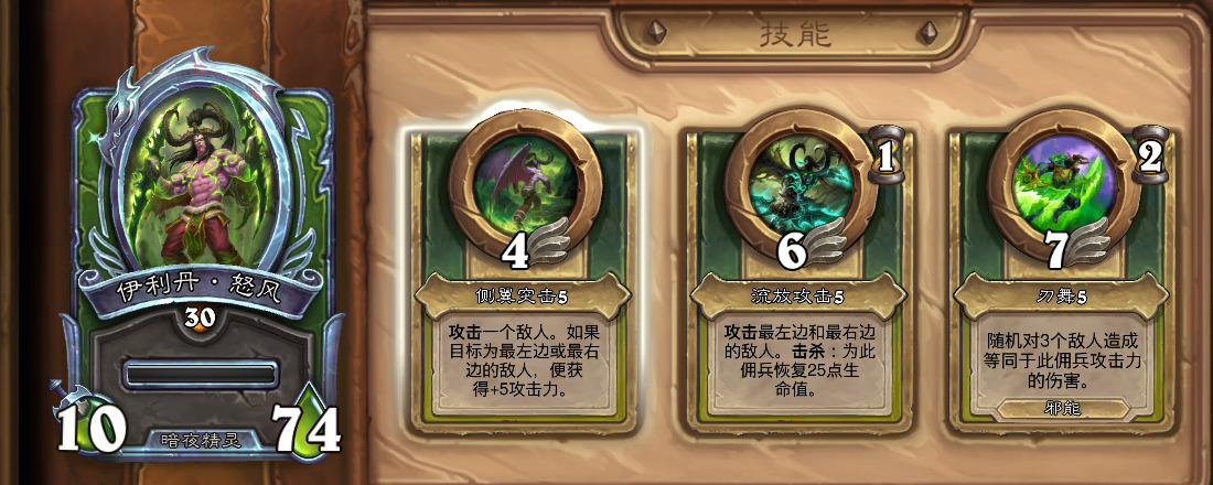 伊利丹对上面几点需求基本都能照顾到一点。他的三个技能,无论是攻击还是大招,都和攻击力直接挂钩,充分利用光明之翼的buff;他的大招刃舞有冷却2,但后备上场直接放;他也适合被凯瑞尔的光明圣印buff(如果凯瑞尔活得够久,萨穆罗死得够快);他的2技能有机会回血,大招是aoe,具备一定的单兵作战能力。