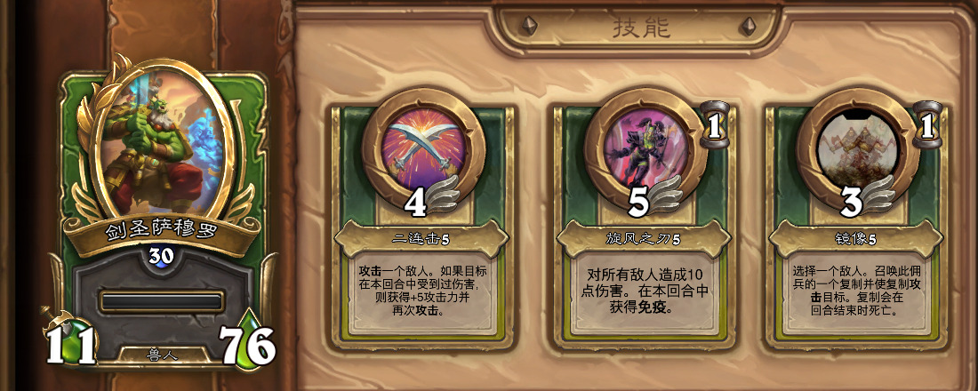 当然,这种进攻方式并不是无敌的。有些佣兵第一回合就能开嘲讽(凯瑞尔、穆坦努斯、乌瑟尔,还有泽瑞拉的致盲),让萨穆罗砍不到关键目标。但萨穆罗一方也不亏,因为萨穆罗的攻击力还是涨起来了,而且也打掉了对方肉盾半血。这已经是很不错(且简单粗暴)的制胜手段了。