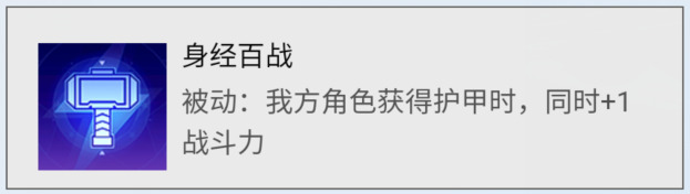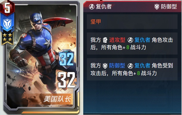 是的,这张卡能在不断的防御中增强全队的身材,不仅能增强叶莲娜进攻的战斗力,也能在轮到自己进攻时能够做到不会立刻阵亡,加上仙宫的加甲加战力的技能,又是一次绝妙的配合,让美队能够在叶莲娜进攻和自己被攻击都源源不断增加战斗力!