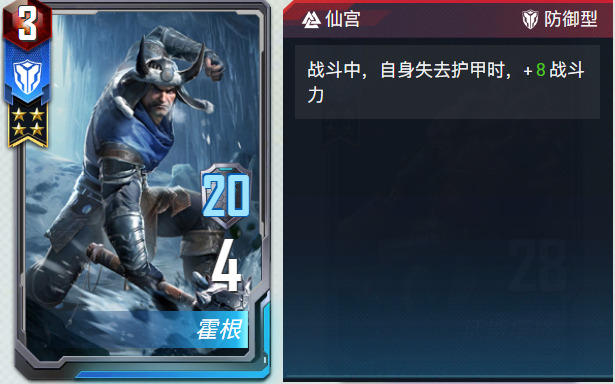 用霍根来抗多动惊是老生常谈了,通过佩戴霍根专属锤子能够每回合增加护甲,加上仙宫的闪电护盾或仙宫盛宴能够很好地让这位前盾叠起厚实的护甲,养的好能很容易抗下一波惊队的大招。