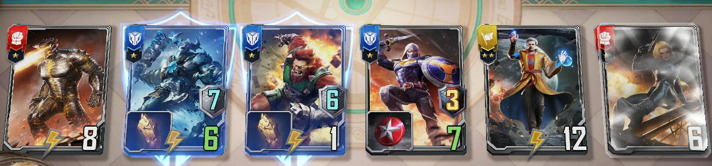 本卡组最大的优势是诸神工具人都只需要1星,加上所有核心卡都在4本及以下,只需要2工具人1大宗师1叶莲娜1坚甲随从1红盾就能成型(美队可以暂时换成坚甲随从,没大问题),**降低了难度,非常适合上分。