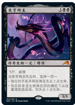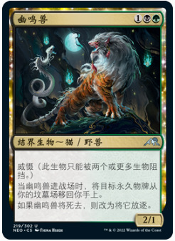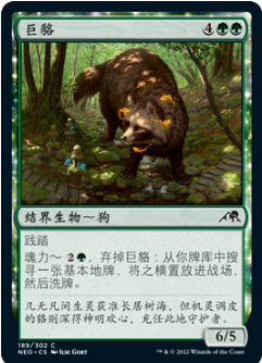银铁中的绝对大哥,还自带跳费调色堆墓来捞。黑绿传记这种,一定要有大哥,属于是优先级比较高的优质填充物,数量可以抓多一些。出了上述的牌,我喜欢抓这头狗,在抓完第一包的时候,如果发现自己缺乏高费致胜咒语,我会提高这头狗在接下来的时间内的抓位。