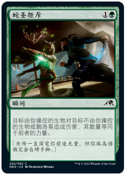能赚,但是选择权在对手,而且0/4战斗力也较弱。总体感觉用起来不太舒服,抓位和蛇圣濑四郎传说差不多。但又因为绿色的重要性,如果它和蛇圣濑四郎传说在同一抓,仅在它们两个之间选择的话,我会选择蛇圣濑四郎传说,毕竟绿色才是主轴。