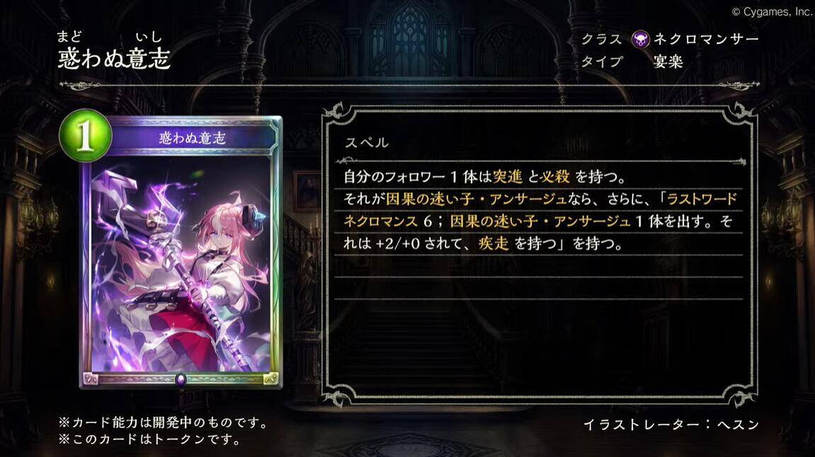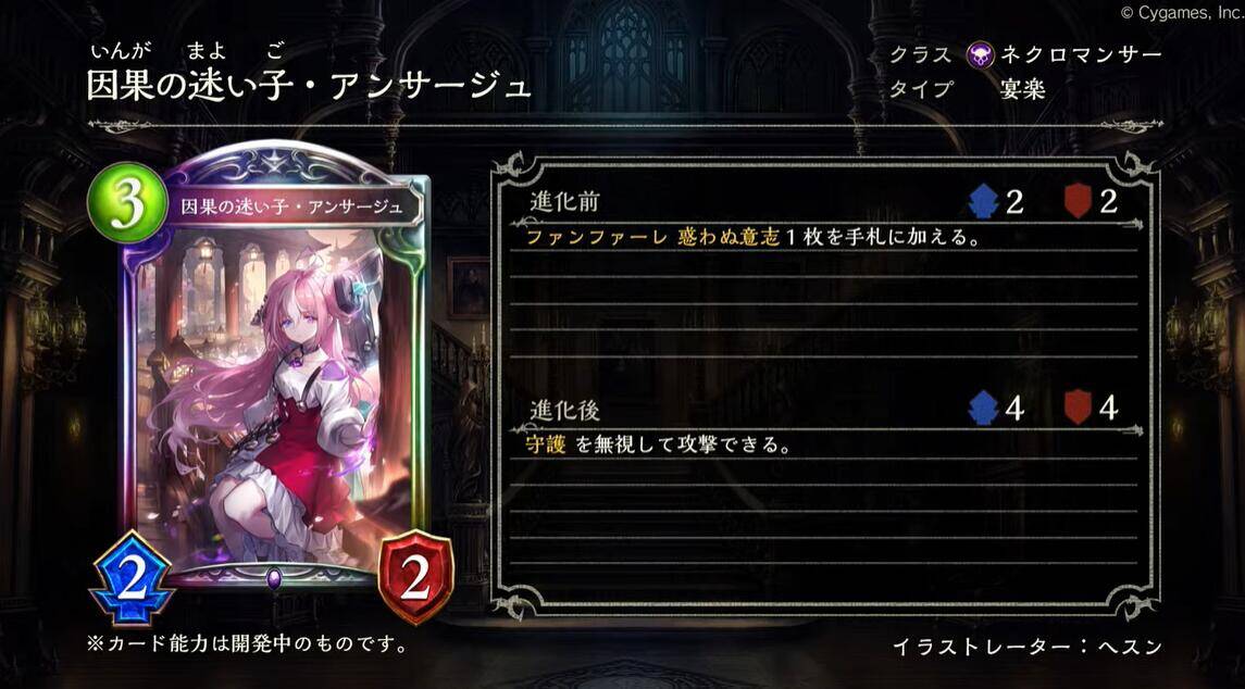 如果其为因果的迷途者·安莎珠的话,则会额外使其获得“谢幕曲 死灵术6;召唤1个因果的迷途者·安莎珠到战场上,使其获得+2/+0和疾驰”。