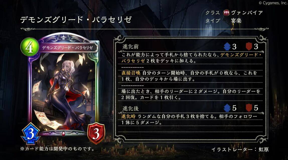 当该牌由于能力从手牌中被舍弃时,增加2张贪欲恶魔·帕拉瑟丽洁到牌堆中。