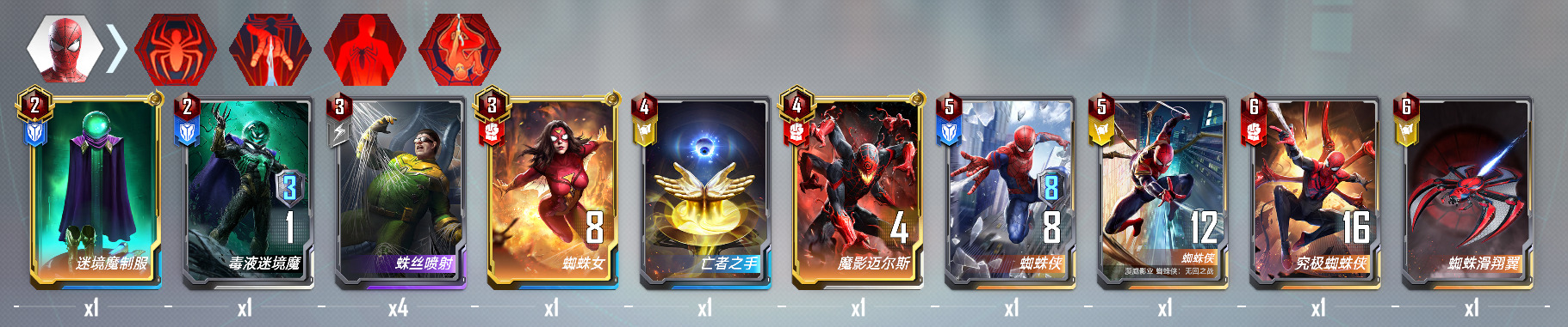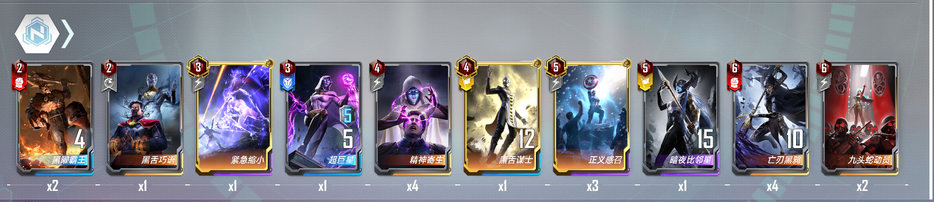 初始启动:2345费教团+5费怪,寄生点5费怪,出黑鸦+灭霸+手套,灭霸下场打手套。