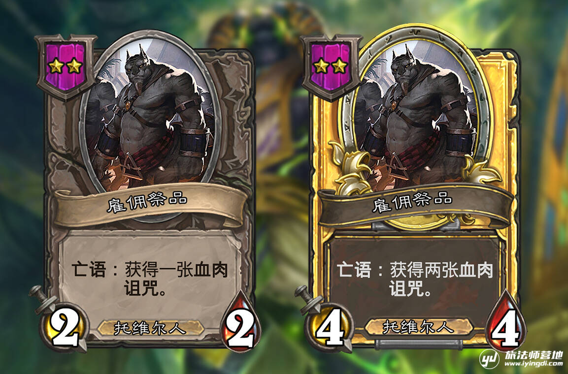 “诅咒”是关键词,“使一个随从获得诅咒”会使随从等级降低1级并且无法三连。并且诅咒和血肉诅咒使随从获得的+2/+2并无关联。