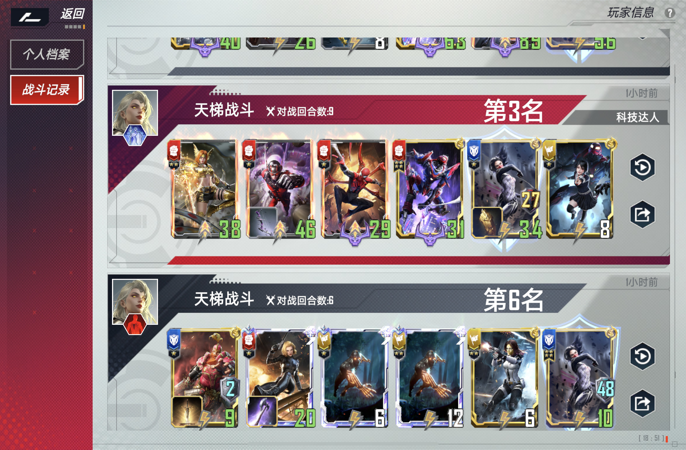 钢铁侠,能提供血量和经济。4费除了角色随便带,夜巡只带一张看运气用。5 6费的万能刺和铁人也都是看情况拿,需要刺的时候刺,铁人有时候可以解掉关键角色(对面有蜘蛛侠别上)。