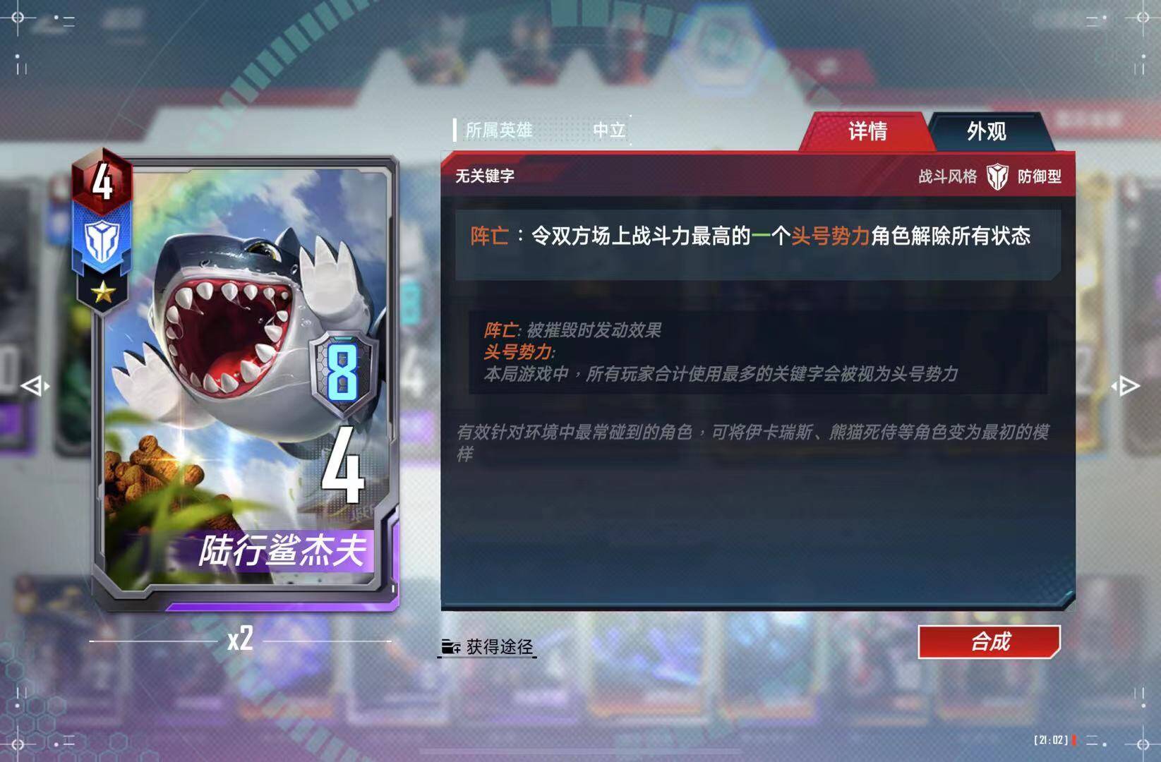 迁越可以保一下血,也能配合责任技能,鲨鱼可以试着用来针对一些主流卡组: