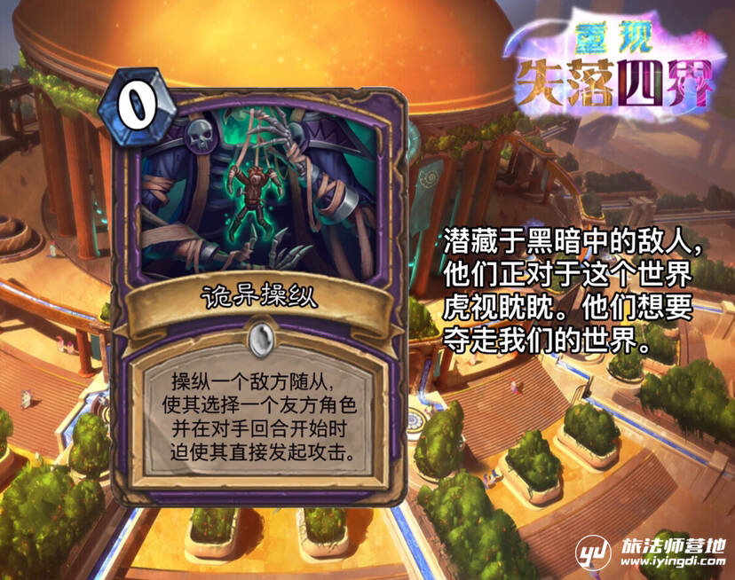 术士卡牌“诡异操纵”:双选目标。具体效果即控制一个敌方随从在下个回合的行动,诡异操纵在迫使敌方随从攻击后会消耗攻击次数。