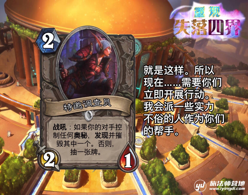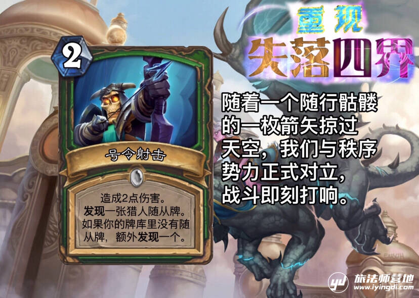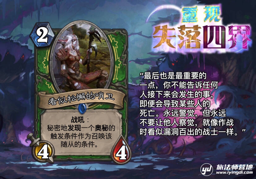 猎人卡牌“看似松懈的哨卫”:使用时对手视角视为挂上了一个奥秘,触发时召唤它。