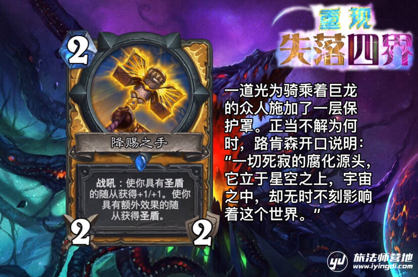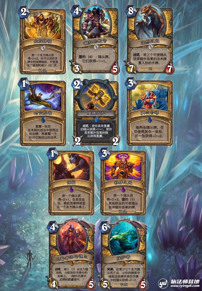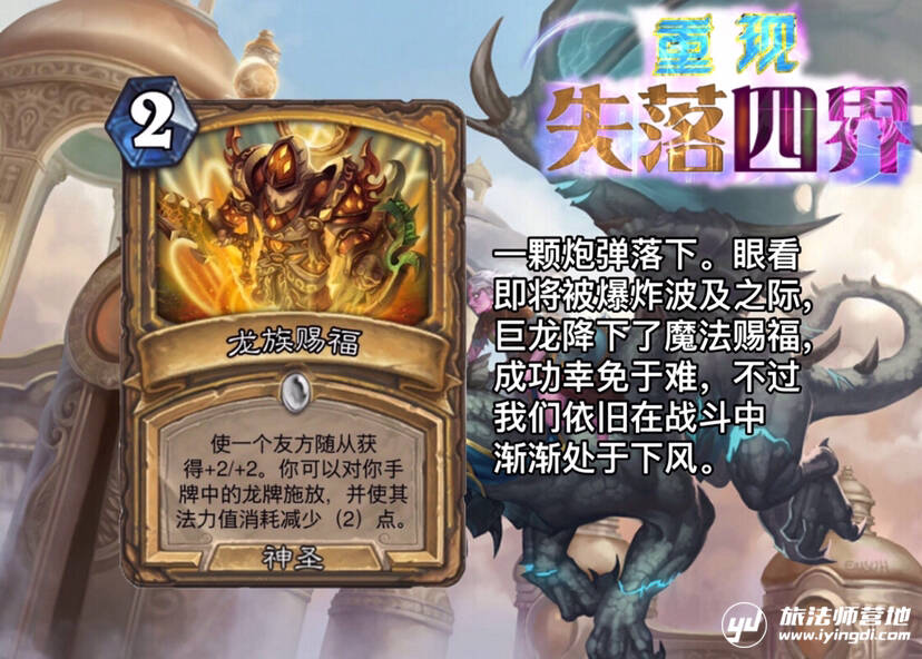 圣骑士卡牌“龙族赐福”:当你拖动施放它时,箭头可以指向手牌中的龙牌以对其施放。