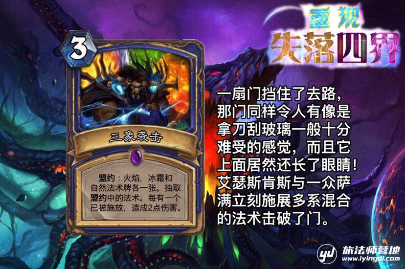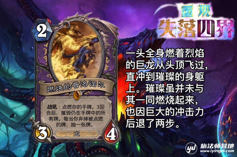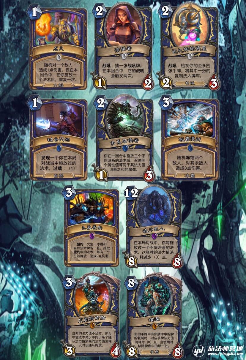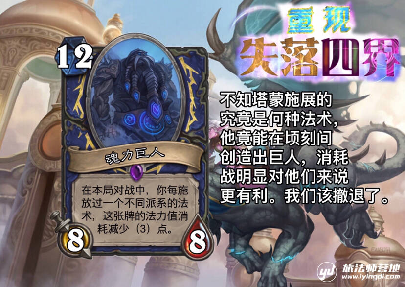 萨满卡牌“璀璨”:假如手里有一张10费怪,牌库里有一张一样的10费怪,那么手里的这张就会变成0费,并且在你打下后牌库里的那张会直接移除。