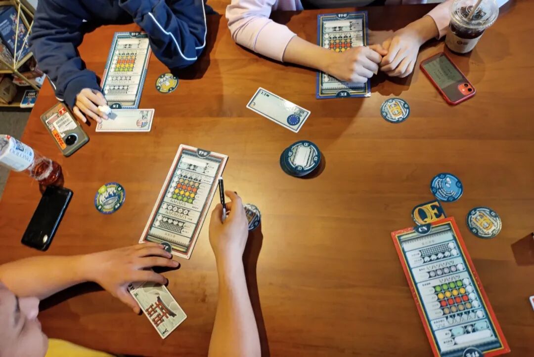 在了解了“第二密封价拍卖”后,我真的觉得这个机制非常有趣,但是目前我又确实没在桌游领域看到有哪款游戏涉及到了“维克里拍卖”。为此,我拽上了静森的编辑们,打算一起体验体验这一诺奖级别的拍卖机制。我选定的改造的游戏是《量化宽松》,这个游戏以第一密封价拍卖为主,因此我觉得将这个游戏改造成“第二价格密封拍卖”会比较方便。