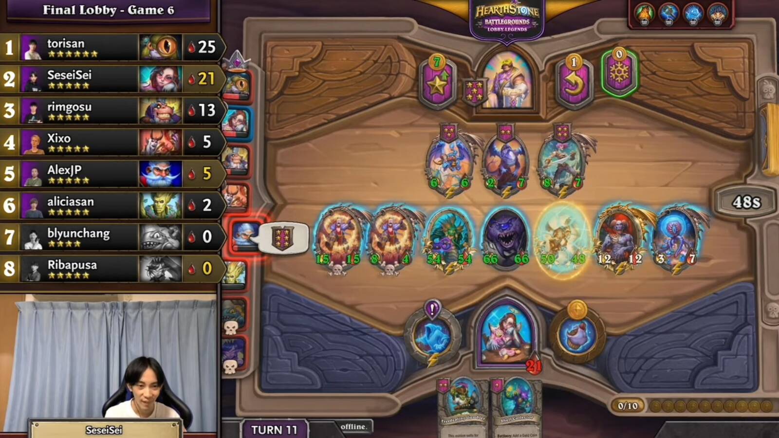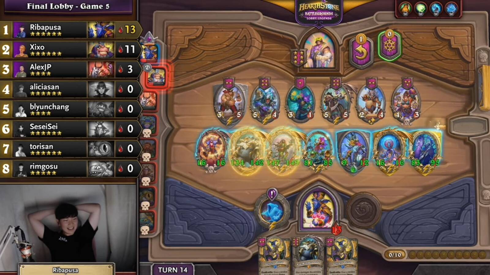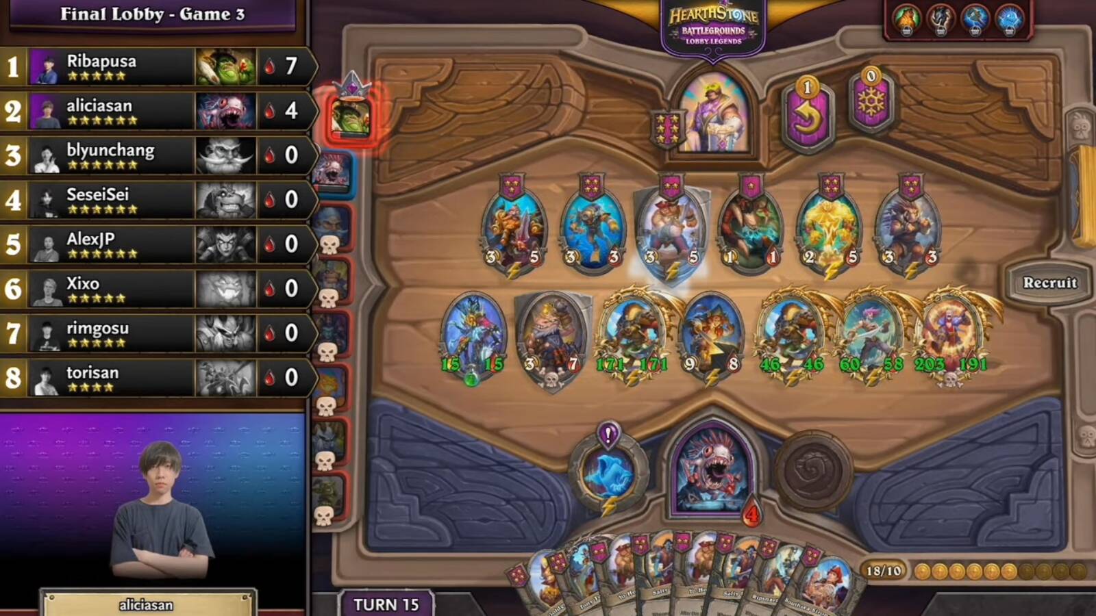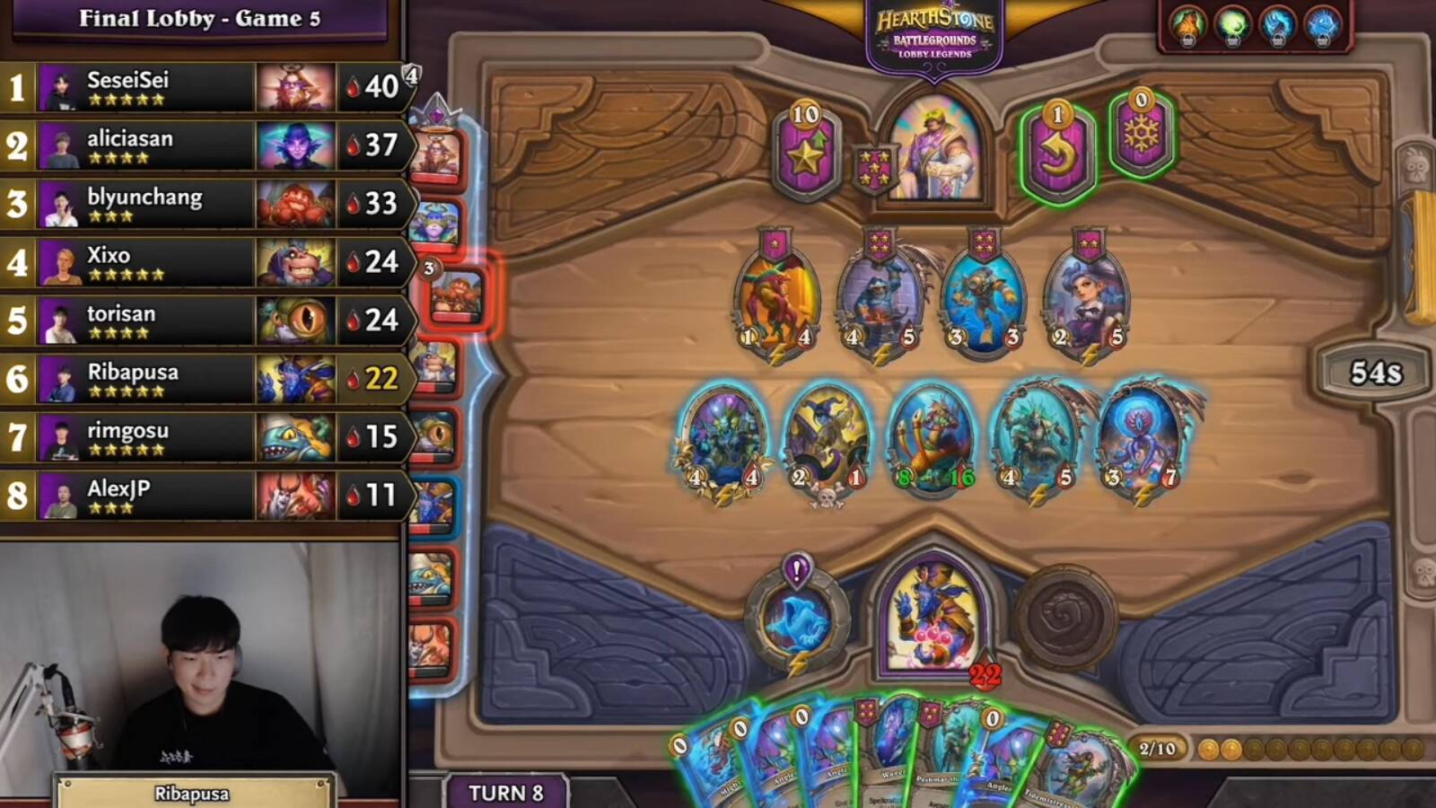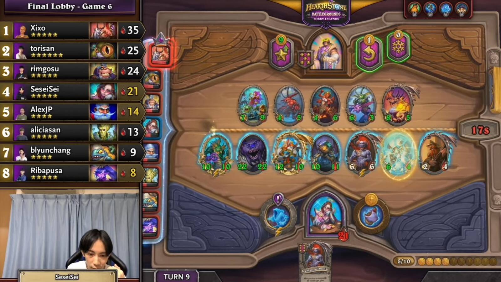 说回比赛本身,应该说不光是리바푸사,而是整个亚太炉石都是这站的主角。外服资格赛阶段,日本6人晋级,创资格赛记录,正赛16进8阶段日本又晋级4人;同时,两位韩国选手也双双晋级决赛,而且还都是小组头名。而且要知道,这一届轮到在欧服打,亚太/国服的延迟还格外高(转播上明显看得出来,国服选手也有人反映),然而结果还是很碾压。决赛局日韩6人一度夸张到包揽前六,国服独苗和欧服独苗双双垫底……