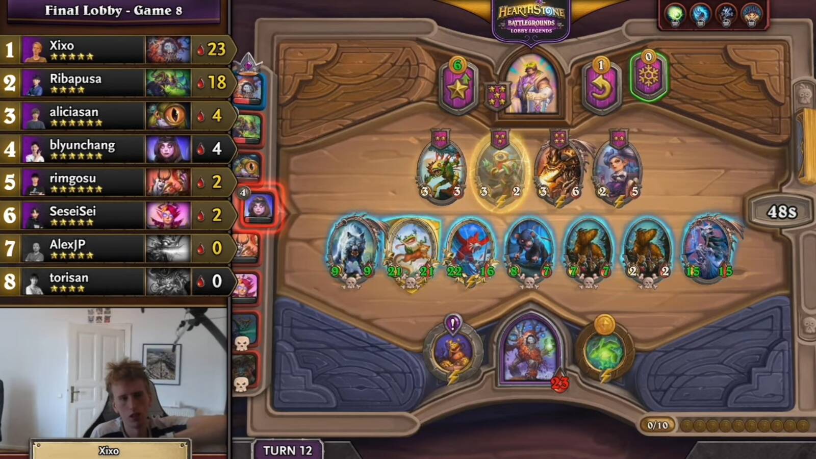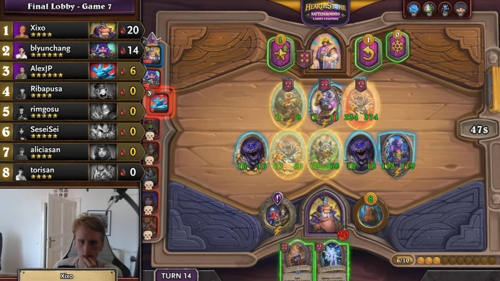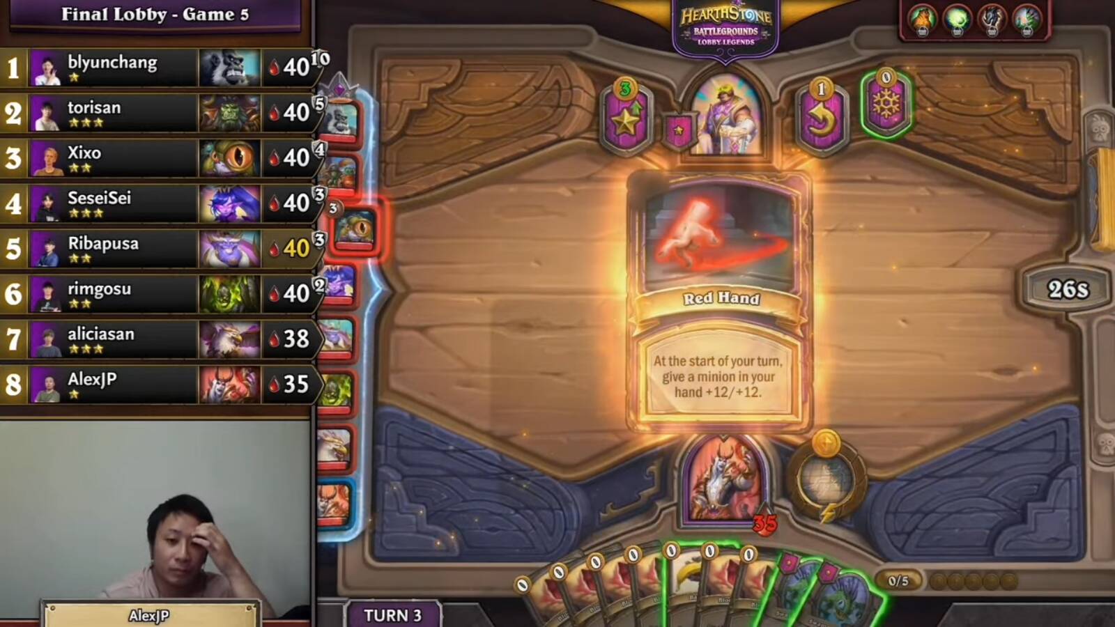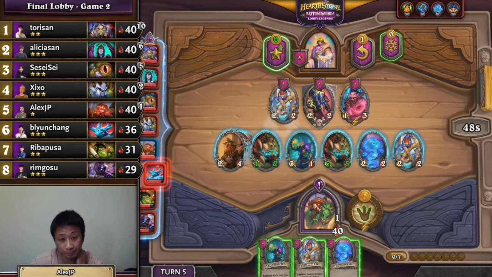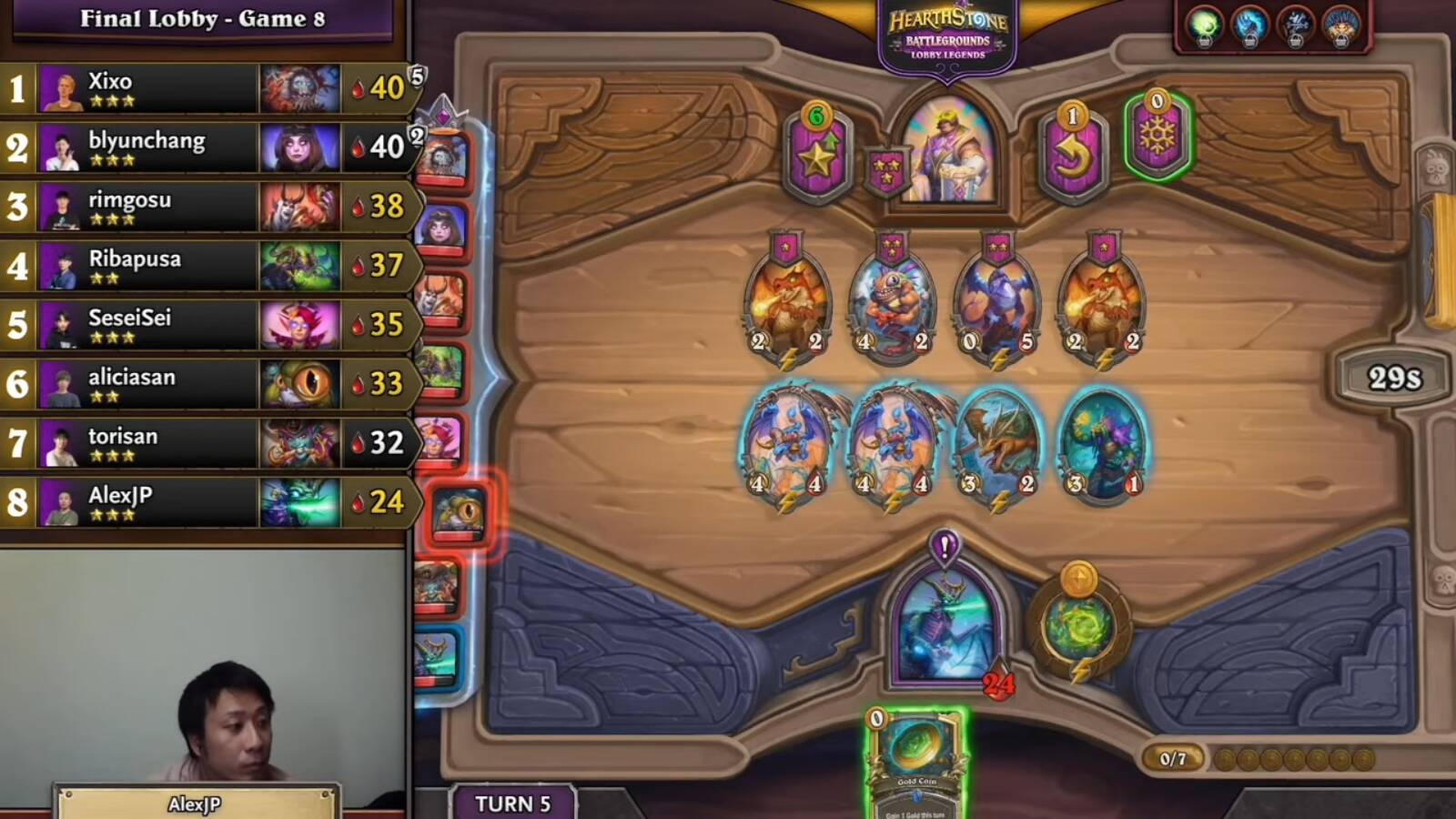 说回比赛本身,应该说不光是리바푸사,而是整个亚太炉石都是这站的主角。外服资格赛阶段,日本6人晋级,创资格赛记录,正赛16进8阶段日本又晋级4人;同时,两位韩国选手也双双晋级决赛,而且还都是小组头名。而且要知道,这一届轮到在欧服打,亚太/国服的延迟还格外高(转播上明显看得出来,国服选手也有人反映),然而结果还是很碾压。决赛局日韩6人一度夸张到包揽前六,国服独苗和欧服独苗双双垫底……