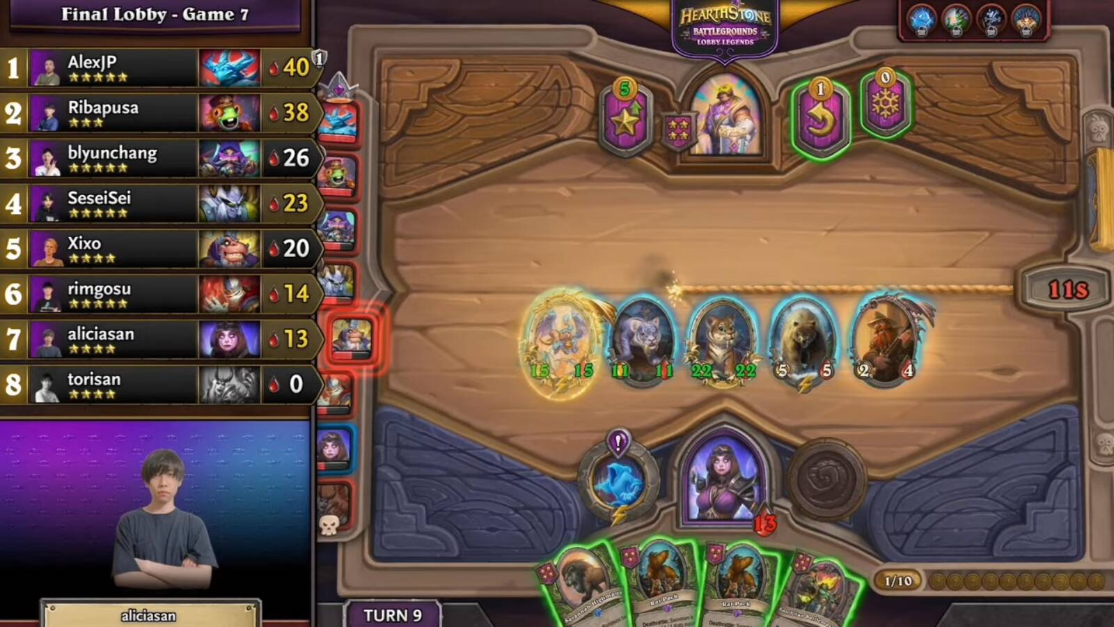 あれっくす是日本炉石的老将了,早年间打构筑时就是名将,拿过最后一届WESG季军,在战旗上也已经第二次打进战场传奇正赛,这次他笑到了最后。他的正赛表现总的来说并不完美,但在听牌赛制下他抓住了机会,在【】人听牌的胶着局势中吃到了最后一鸡。