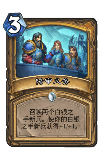 召唤两个白银之手新兵。使你的白银之手新兵获得+1/+1。
