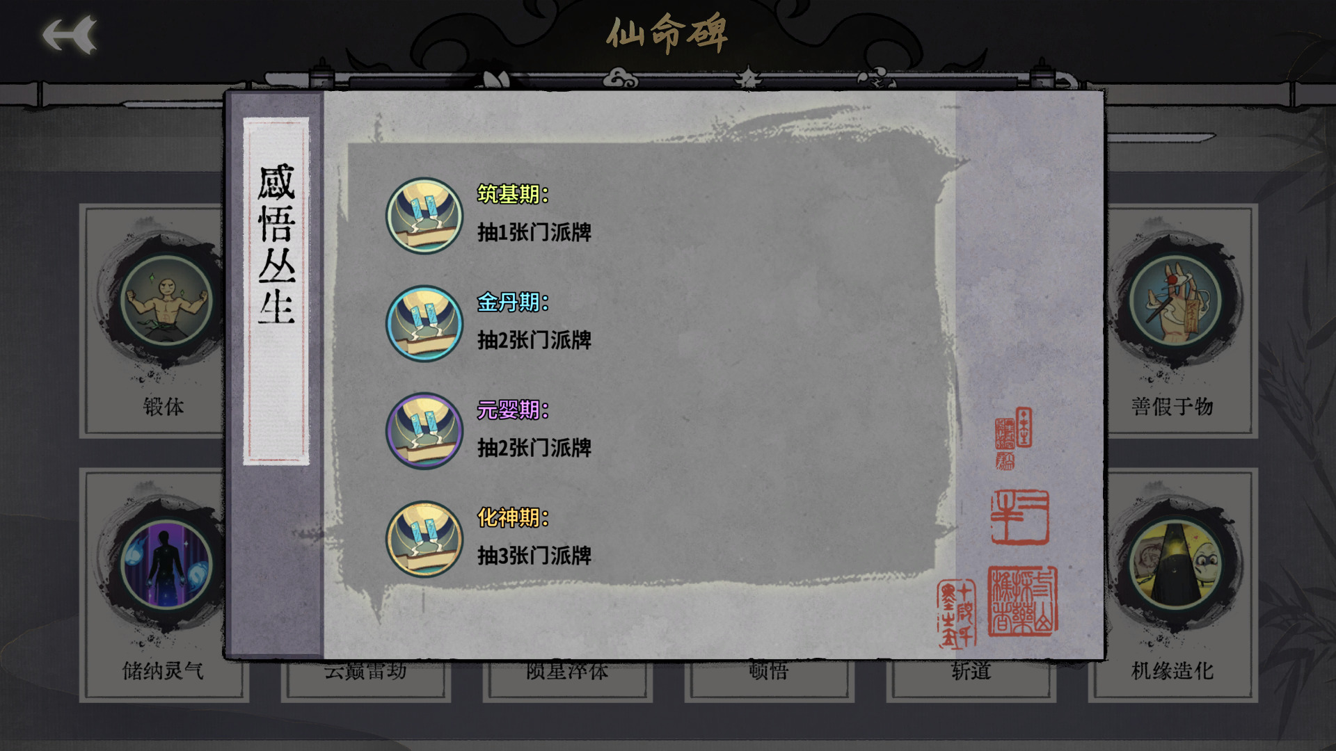 门派牌太多太杂了,抽到的门派牌不一定适合自己的体系,甚至不一定是当前境界的门派牌,而且丑的太少了啊,金丹和元婴效果-一样是什么鬼?除了赌狗不推荐。
