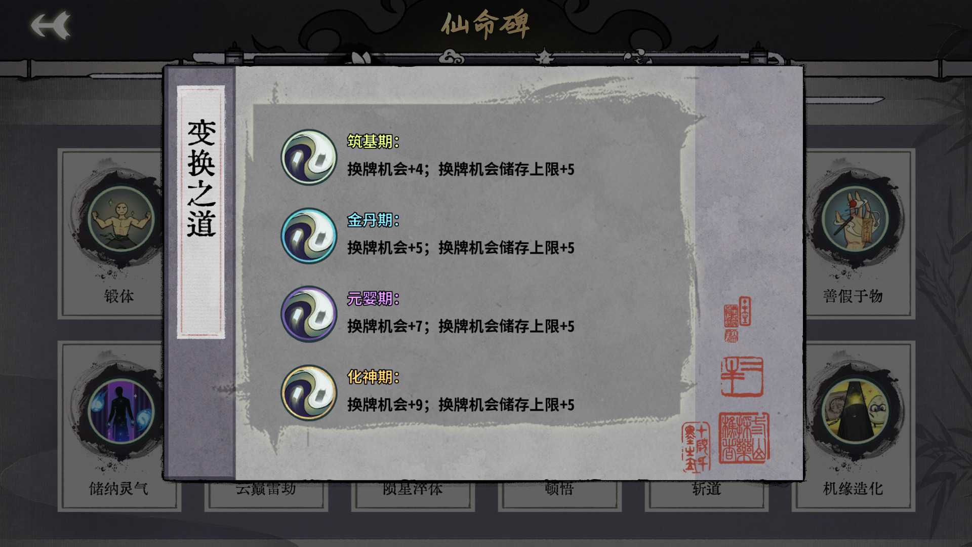 换牌机会次数增加可以提高卡组成型概率。储存上限增加显得没那么重要。这个仙命比较适合卡组急需成型否则可能要出局的危机关头拿,以及下一境界核心比较多的时候拿比如元婴期化神期,泛用性不错。