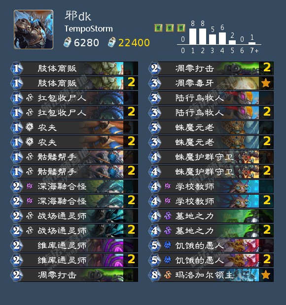 邪dk终于进入了天梯,它看起来很有竞争力。随着天梯越发均衡,这终于是一个在不牺牲你的排名的情况下尝试这套牌的好时机。