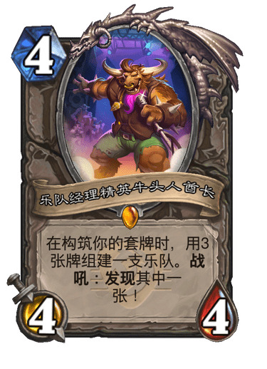 在构筑你的套牌时,用3张牌组件一支乐队。战吼:发现其中一张!