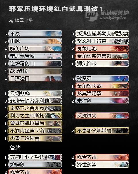 瑟班守护者莎利雅:2-3张。亲闺女看上去很卡这个思路,但其实现在的武具思路更需要去卡解牌回合数。本身在对抗各种套牌时都有机会,有的套牌不带是因为缺少膨胀手段,但我们偏偏膨胀手段非常多,能够把亲闺女变成一个巨大威胁。而实际上只要对方在生物身材上失去了“生物阻挡”去除莎利雅的机会之后你就会发现对方会被卡得非常难受。