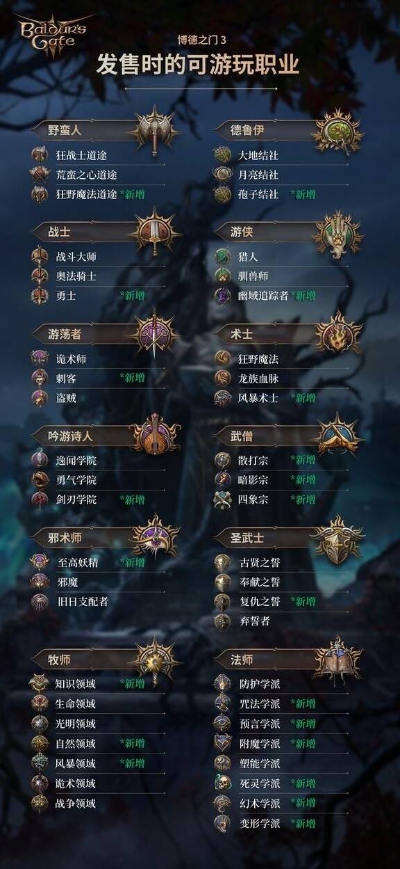 博德之门3正式版可用种族和职业一览